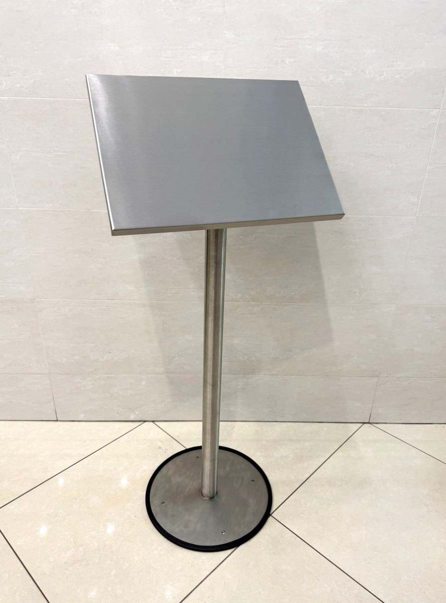 Опис: Металоконструкція для мнемосхеми з нержавіючої сталі — надійне рішення для встановлення тактильних мнемосхем у громадських просторах, освітніх чи медичних закладах, музеях, вокзалах тощо. Стійка виготовлена з високоякісної нержавіючої сталі, що забезпечує довговічність, стійкість до корозії та сучасний зовнішній вигляд. Основу ніжки оснащено резиновою вставкою для кращої фіксації на поверхні та зменшення ковзання.